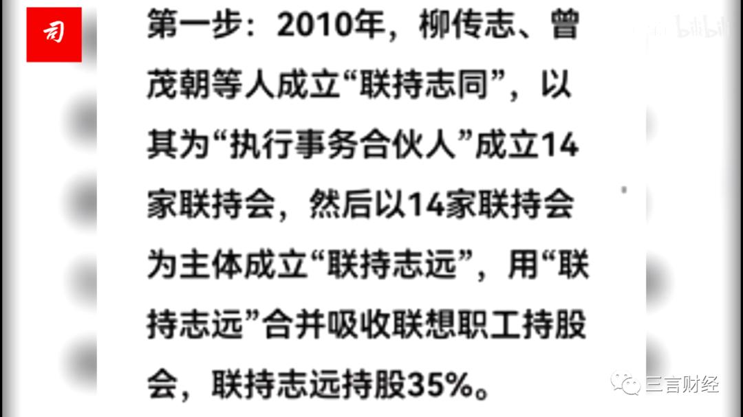 早在2013年,柳传志参加央视节目《对话》时谈及联想最初的股份制改革。主持人问到,会不会担心通过这样的方式导致国有资产流失,柳传志表示,那时候太早了,根本没有“资产流失”的概念。1993年,在中科院的支持下,联想获得了35%的分红权,即公司利润的35%归在联想员工名下,由联想员工自由分配。