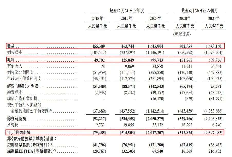 此外,由于近年公司估值迅速上升,按公平值计入损益的金融负债同时增加,由2020年上半年4.45亿元增加至2021年同期43.54亿元,直线上升10倍之多。