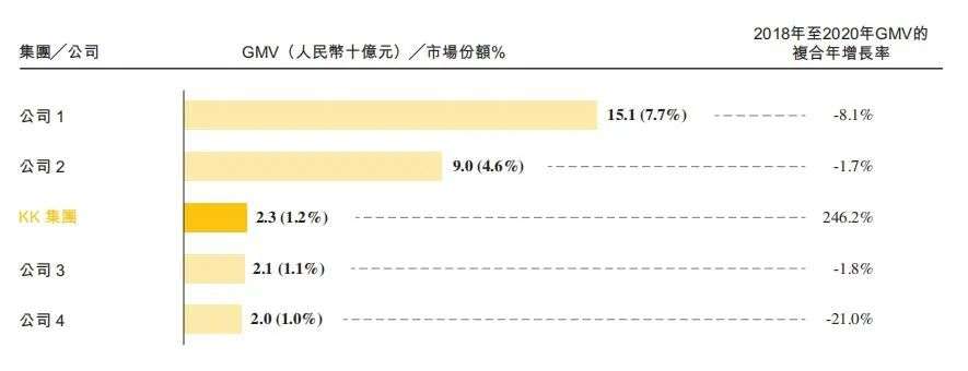 据弗若斯特沙利文报告,按照2018至2020年GMV复合年增长率计算,KK集团为中国三大潮流零售商之一,亦是中国前五大潮流零售商中增长最快的,达到246.2%。