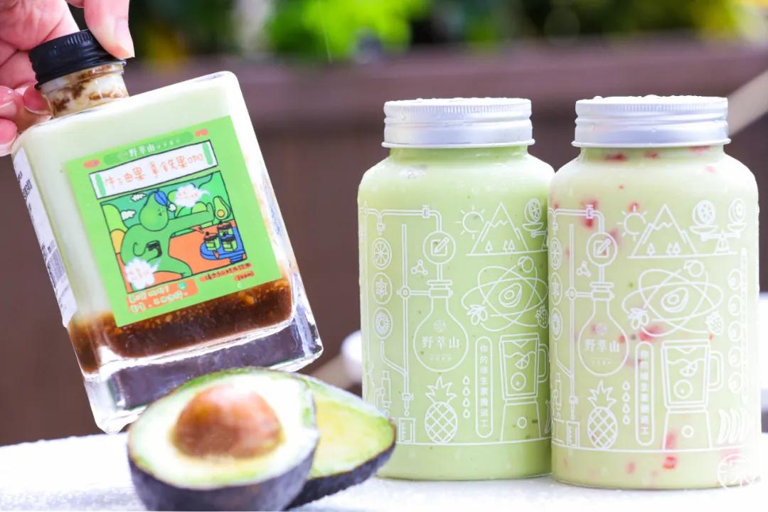 自诞生之初,野萃山的客单价就保持在35元左右的高位,以复合型果汁产品为主,经典单品包括牛油果草莓卡士、芒果卡士、暖暖淮山等。
