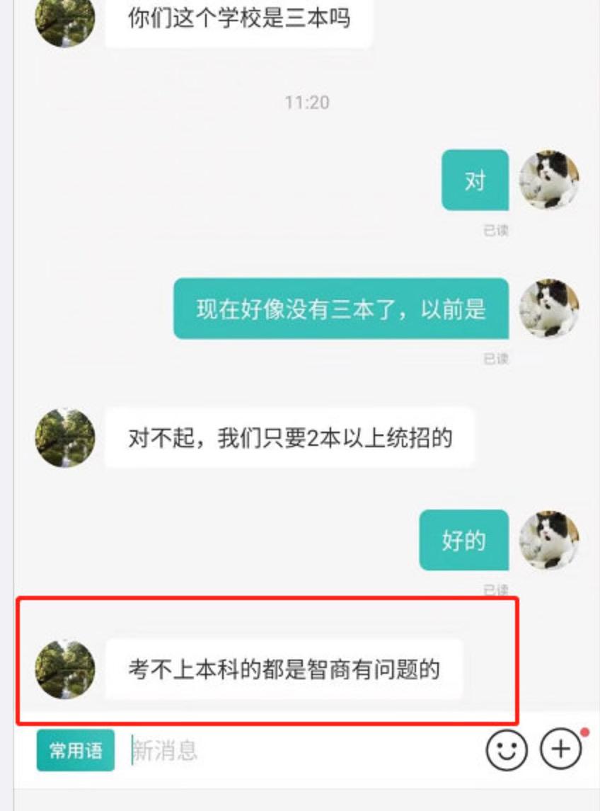 还附言:“考不上本科的人智商都有问题。”