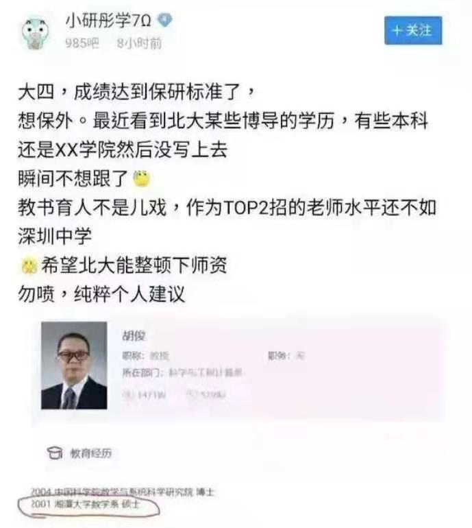 前段时间,双非院校毕业的北大教授火上了热搜,因为研究生毕业于双非地方院校就被质疑其能力不足,并被网友调侃北大师资太差。