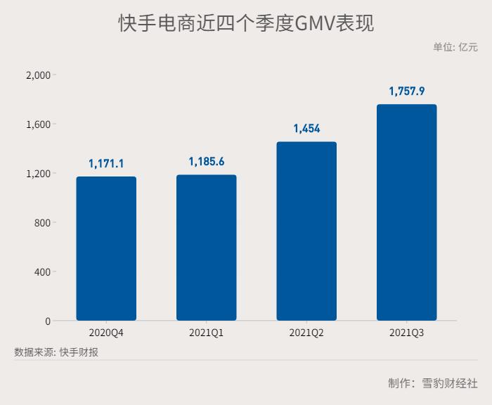 Q3财报中,快手电商的数据表现较优:GMV达1758亿元,同比升86.1%,环比升20.9%。此前的半年报中,快手电商GMV为2640亿元,同比略有下降。