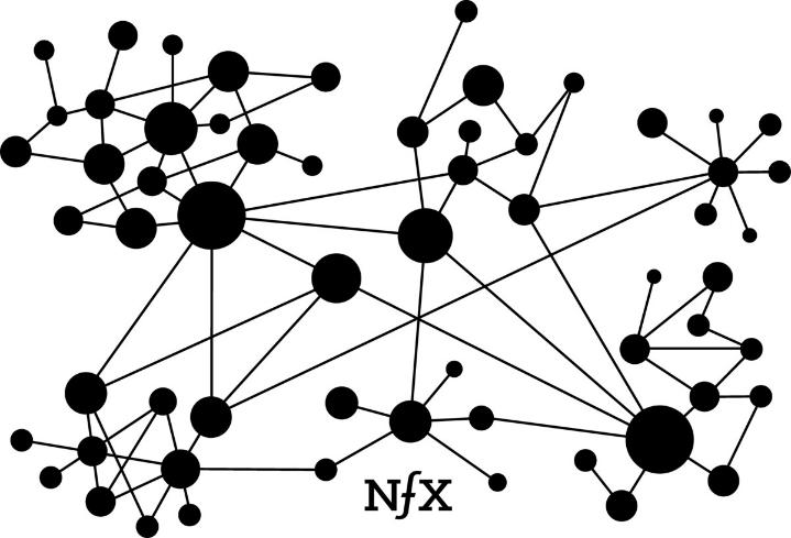起初人们认为,网络价值与节点数量呈正相关的关联,数量越多价值越大,可到了2001年,MIT计算机科学家David Reed却发现,真实世界的网络并不是一个规则的结构,而是像下图一样规模不一、呈群落状的结构,比如家庭、学校、共同兴趣的圈子是相对紧密的结构。