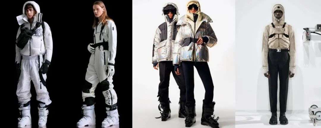 此外,高端羽绒服圈的另一趋势是做成滑雪服。以迪桑特为代表的滑雪羽绒服,简约的黑白两种颜色,高领魔术贴袖口防风设计,肩部宽松腰部收紧有效贴合身体曲线、运动不受束缚,在打破都市与户外界限的同时,也适用于日常穿着。