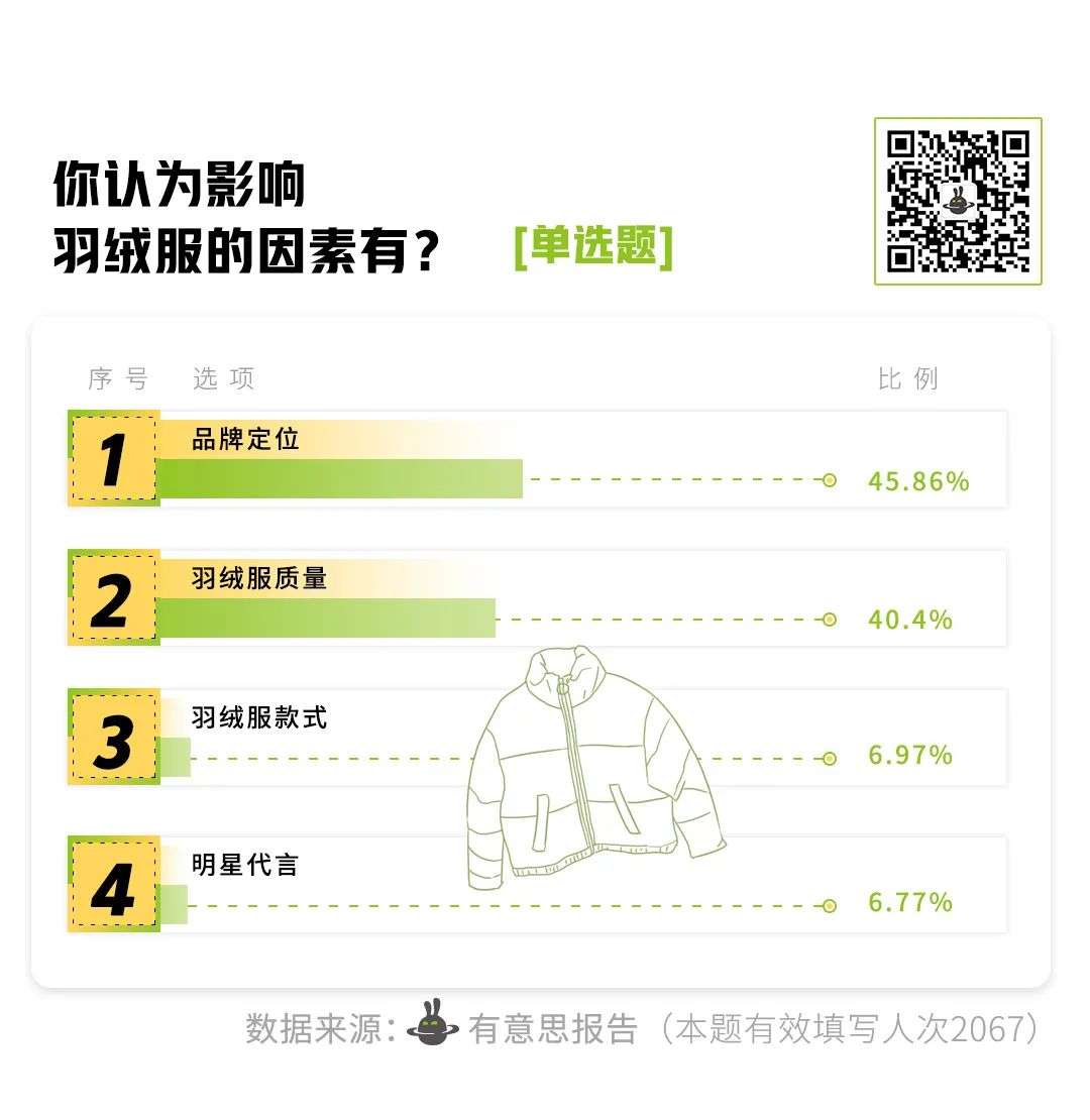 在有意思报告发布的“羽绒服价格”调查中,年轻人能接受的羽绒服价位在千元以内的占比超六成。选择商场里2000-3000元羽绒服主流价位的占比仅4.7%。