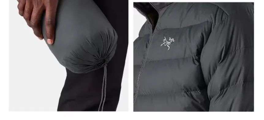 不只填充物,要把羽绒服做高端,面料也得考究。毕竟在徒步、登山、露营等精英运动中,过于厚重的面料会让羽绒服成为一种负担。GORE-TEX面料是基础,像蒙口、始祖鸟会有自己的专利面料,让羽绒服抗风、防水、透气、轻便,还不钻毛。