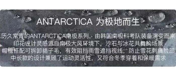 加拿大鹅的成功让后来者受到了启发。如今大部分中高端羽绒服的宣传页面上都会出现“极地科考”“XX登山队登山服”“北极科考队战袍”字样,有条件的更要把加拿大、瑞士等极寒地区原产地的字体放大。
