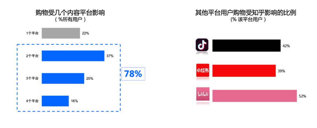 这些多维度的专业真实用户输出的优质内容,已经成为知乎平台用户在做消费决策时的关键参考。不仅如此,“知乎对小红书、B站、抖音用户的购物决策的影响力也在40%左右”,凯度在白皮书中得出了这样的调研结果。