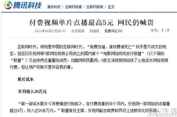 早在2011年时,乐视网与腾讯视频等七家互联网公司联合发起成立了国内首个“电影网络院线发行联盟”,旨在“使影视剧网络点播收费形成统一的模式和标准”。彼时,该联盟选择了选择了李亚鹏和徐静蕾主演、6天票房过亿的《将爱情进行到底》作为试水单片付费模式的首部影片。