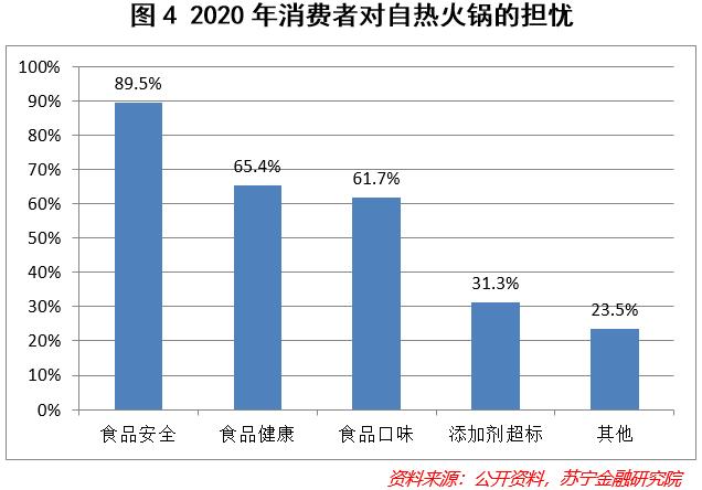 当前,自热火锅的众多中小品牌不具备自建工厂的能力和时间,在效率就是生命的新经济下,大多通过代工厂生产,因此品牌和产品之间,夹着一个代工厂,从而难以对产品质量进行有效把控。为了保留食材的原汁原味,常规包装下,食材的新鲜度就会下降,进而可能存在安全隐患。从对市场的调研可以看出(见图4),消费者对于自热火锅的担忧主要来源于安全与健康。