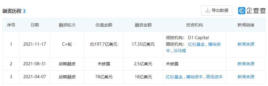 最新一轮融资的投资方除了主要支持者博裕投资、高瓴资本、红杉资本中国、腾讯控股以外,还包括海纳亚洲创投基金在内的新投资者。