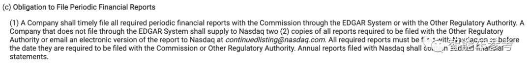 所有纳斯达克上市公司必须在规定时间内通过EDGAR系统或其他监管机构,及时向委员会提交所有要求的定期财务报告。