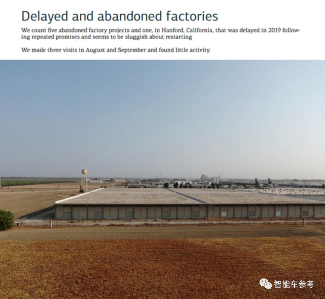 做空报告显示,FF此前承诺在中国和美国五个地点建立6所工厂,但是至今这份计划并没有落实。