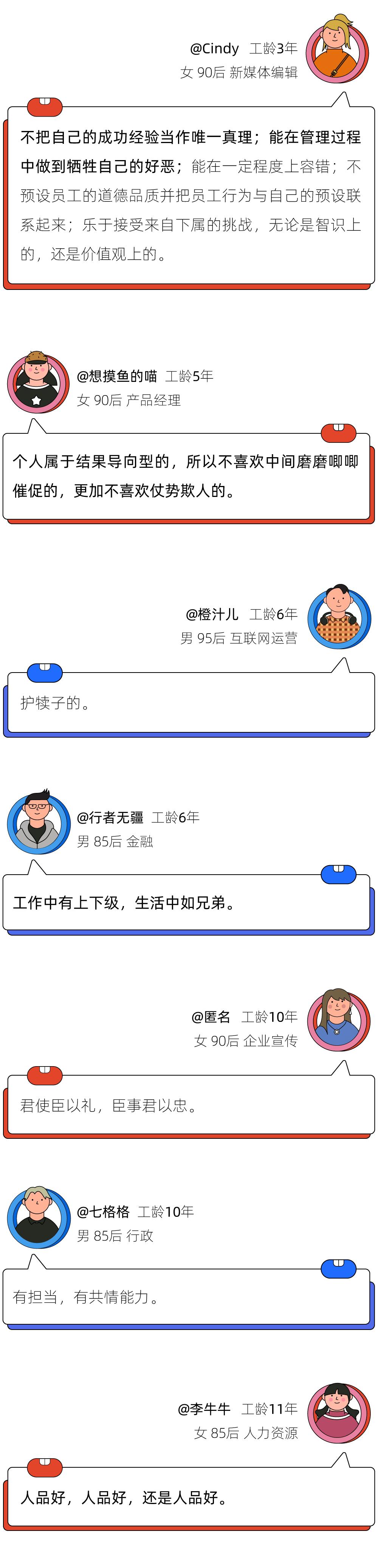 年轻人对领导的想象百花齐放,但随着工龄增长,要求渐渐退步,到最后,人品好成了唯一的充分必要条件。