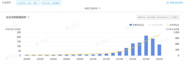 Waymo的估值从三年前的1750亿美元一路下滑至300亿美元,降幅超过800%。国内曾经的自动驾驶明星公司融资额度也逐渐减少。据天眼查专业版APP数据显示,自动驾驶行业企业注册数量在2018年达到顶峰,之后呈现下降趋势。