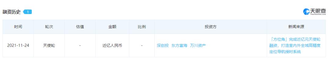 天眼查信息显示,11月24日,上海方位角数据科技有限公司获得了近亿人民币的天使轮融资,值得注意的是,该公司主要从事高精度时空服务和室内外一体化定位导航服务,团队主要成员来自于中科院的北斗导航卫星研制团队。