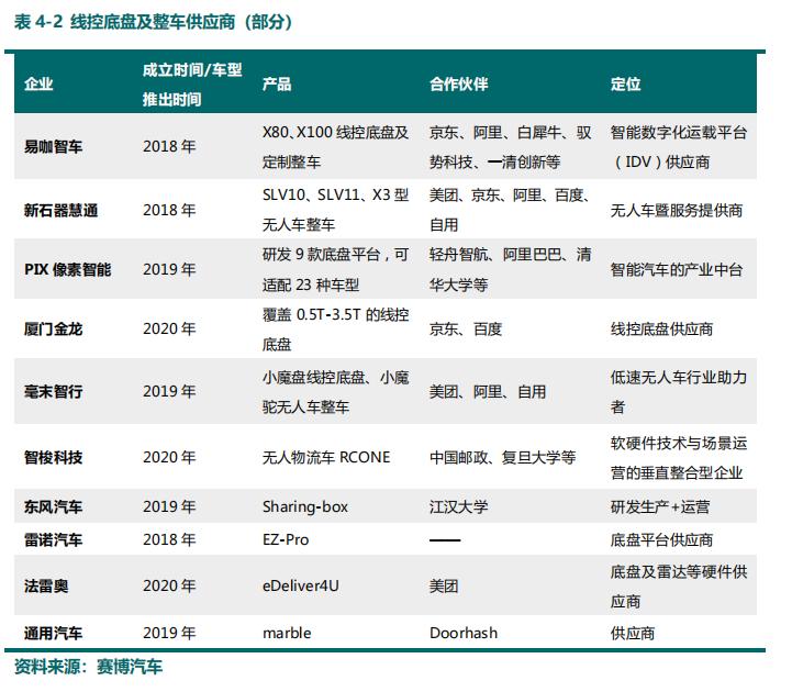 当前美团、菜鸟这些场景方的整车投放数量都在三位和四位数之间徘徊,永辉、大润发等的投放量则更少。但随着技术、法规逐步成熟,规模化是一个必然存在的门槛。从下图可以看到,盯着这个门槛的技术储备工作,赛道上早已开始进行。