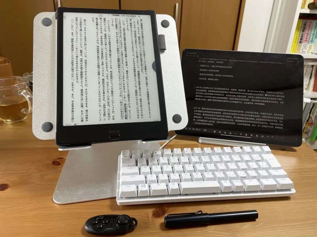 对于重要的文章,我是倾向于扫描成电子版阅读的。图中的电纸书设备是 BOOX Note 2 ,我已经了用了一年了。我还为它配上了 Lamy 的电纸书用笔,方便划线。又在亚马逊买了个便宜的安卓设备用遥控器,可以远程翻页。