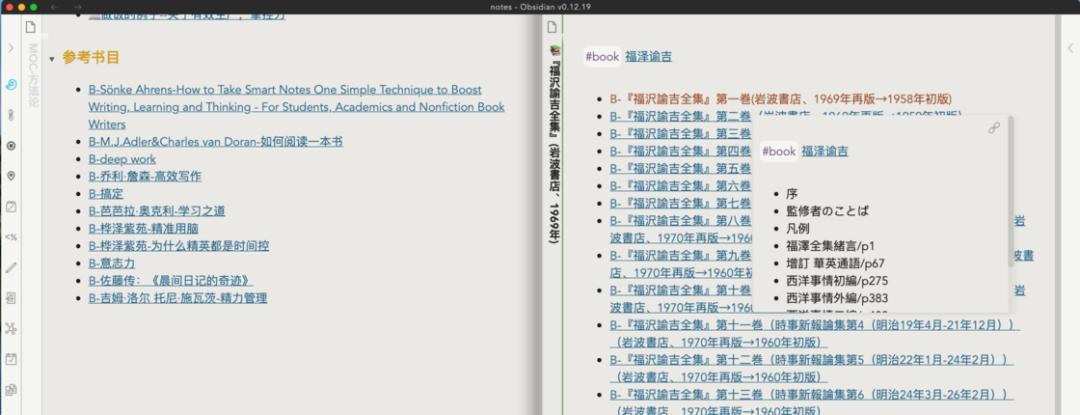 - 在 Obsidian 中不但有页面引用,也有块引用,节引用,因此完全不妨碍在新笔记中按照不同的粒度进行使用。