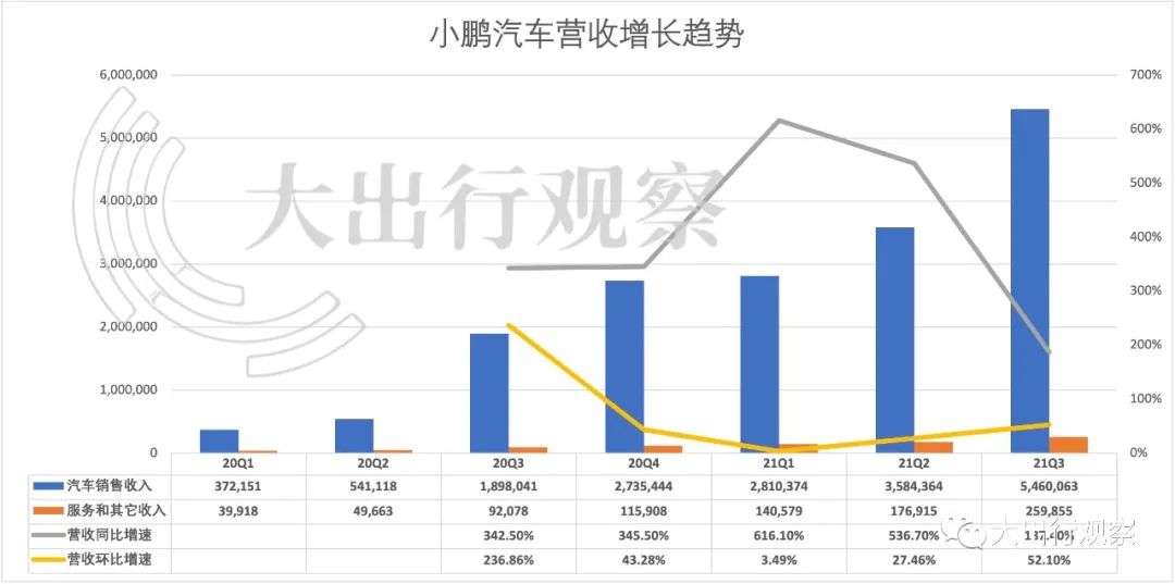 小鹏汽车第三季度营收增速显著放缓。营收同比增速187.4%。今年一、二季度,小鹏汽车的营收环比增速分别高达616.1%、536.7%。即便下个季度小鹏汽车能如财报预期中所述,营收达到75亿元,环比增速将大幅下降至31.58%。