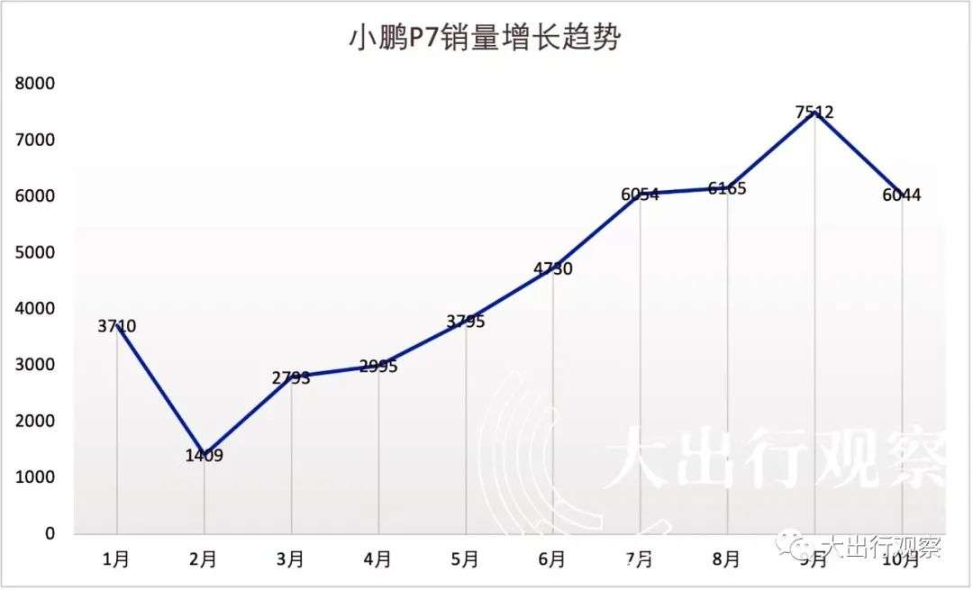 这或与主力车型P7的销量下滑有关。10月,小鹏P7销量6044辆,环比下降近20%。值得注意的是,在小鹏汽车的销量构成中,P7一直是销量主力,几乎每月都承担了超过60%的销量贡献。