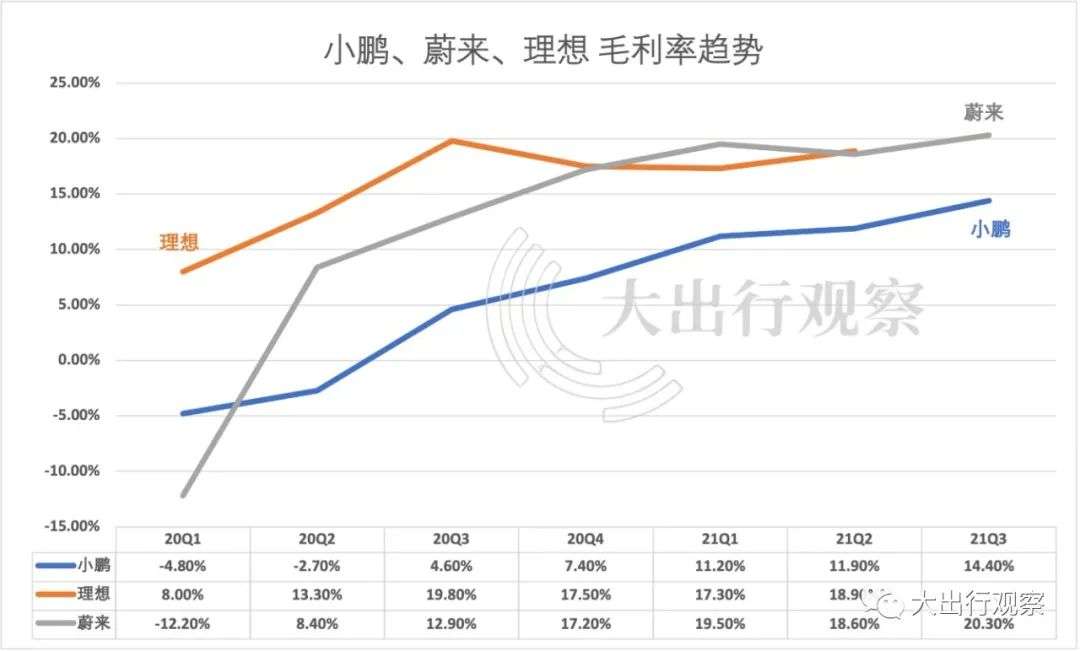 小鹏汽车三季度实现新车交付为三家造车新势力第一,营收也创新高。但对比蔚来、理想,小鹏汽车的营收规模依然是三家中最低。第三季度毛利率14.4%,尽管有所增长,但依然是三家造车新势力中毛利率最低的一个。
