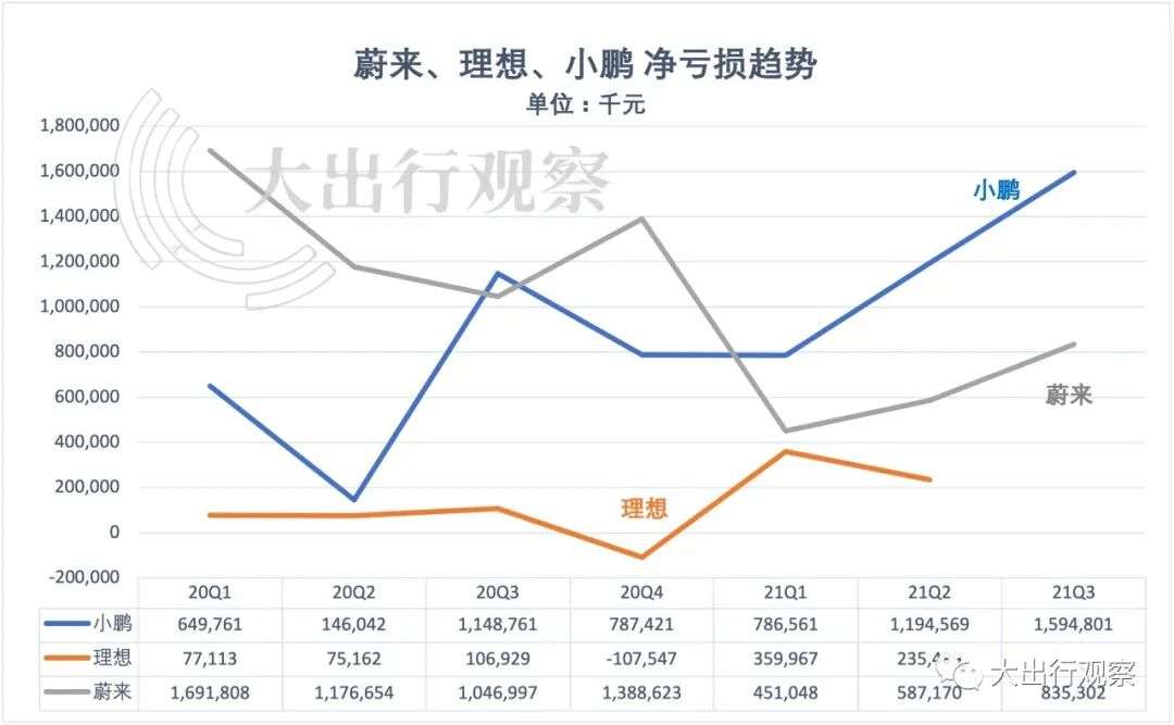 销量拔高,小鹏汽车的亏损压力却未缓解。财报显示2021年第三季度,小鹏汽车共亏损15.95亿元,比二季度扩大38.8%,是今年一季度的两倍多。小鹏汽车前三季度的累计亏损,已超过去年全年。成为销量冠军的同时,摘不掉的是亏损第一的帽子。