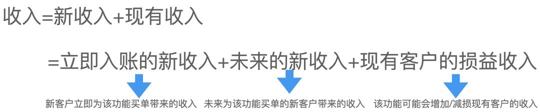 收入=立即入账的新收入+未来的新收入+现有客户损益的收入