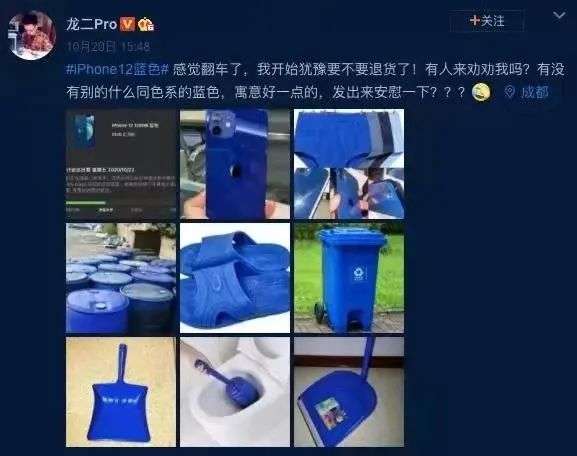 说实在的,很多人看到这种蓝色的第一感官可能不是特别舒服,饱和度过高,视觉冲击力过大,让人想起小时候妈妈会给自己买的那种颜色十分俗气的秋裤。去年苹果发布的iPhone 12,配色之一也用了这种蓝色,结果被大家狠狠吐槽了一番——一向以高端形象示人的苹果,怎么可以用和垃圾桶、马桶刷、拖鞋这些廉价日用品一样的配色,还能不能愉快地发朋友圈了?
