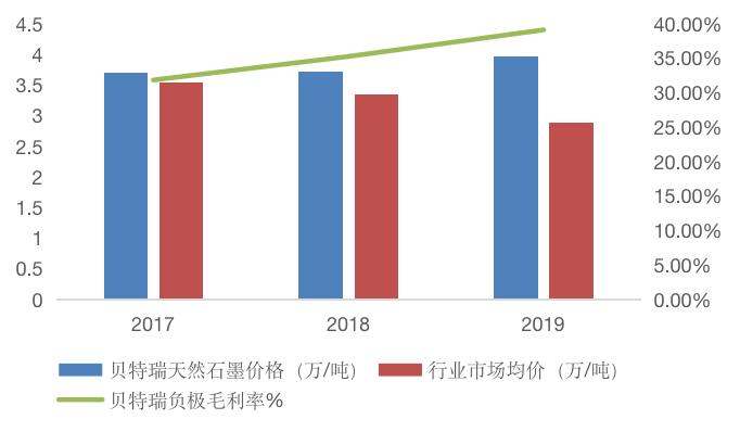 图3:贝特瑞天然石墨价格与行业对比 数据来源:申万宏源、36氪整理