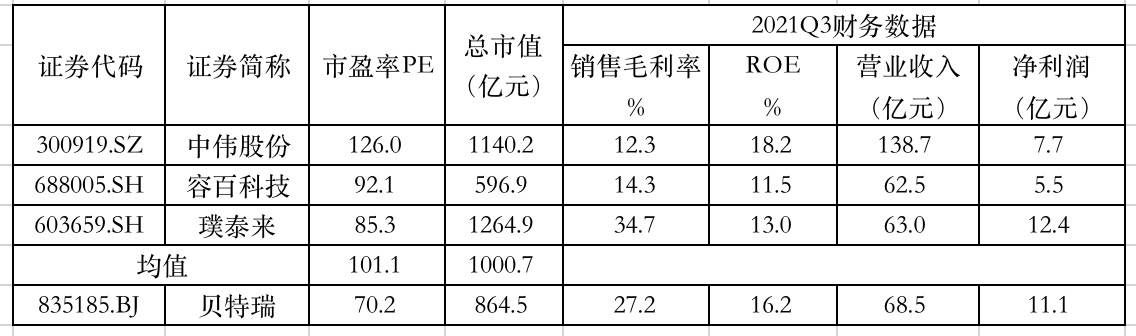 聚焦到交易机会上,我们认为,9月北交所宣布成立后,贝特瑞作为最受益的标的之一,股价涨幅已经超过100%,市值水平突破800亿,PE估值达到70倍。但相比目前上市的同业公司容百科技、璞泰来、中伟股份100倍左右的平均PE水平而言,公司估值仍处在相对合理水平。