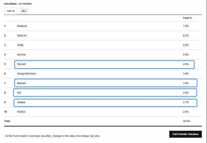 图3:旗舰基金SMIT持仓(截至2021年10月31日)来源:柏基投资官网,36kr整理