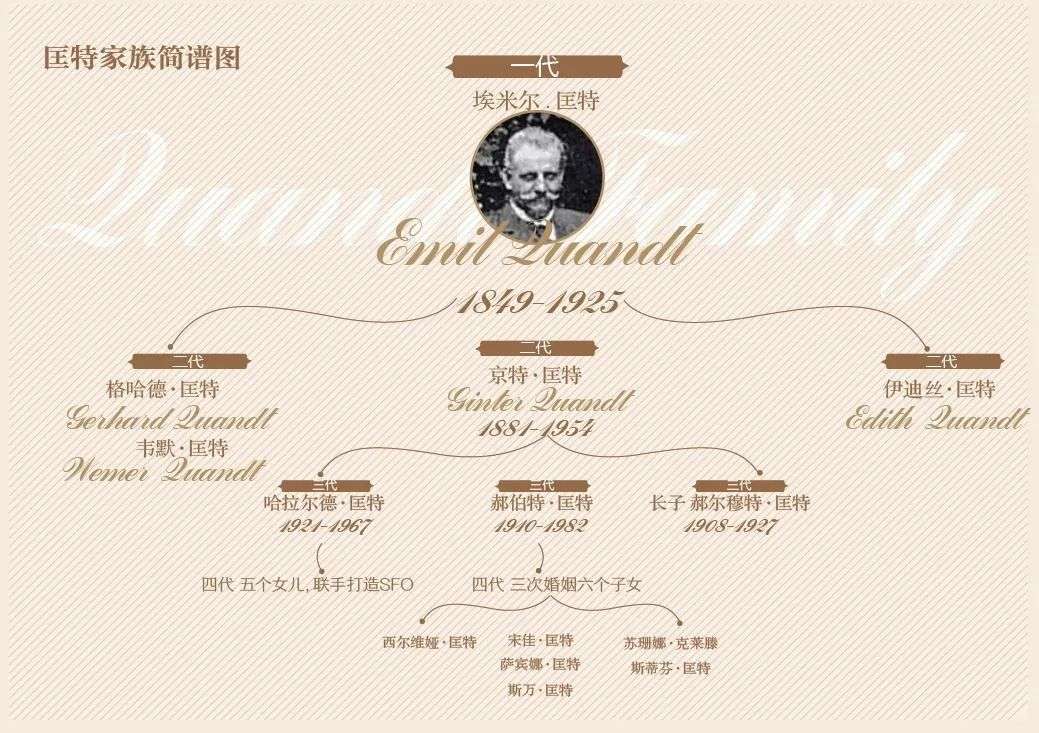 匡特家族的财富,始于第一代埃米尔·匡特(Emil Quandt)。他娶了一位纺织厂主的女儿,后来与妻弟联手买下该厂,成为家族第一代资本家。