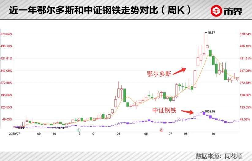 业内中小型企业面临淘汰落后产能的风险,利好鄂尔多斯这样的龙头企业,今年前三季度,鄂尔多斯业绩、股价迎来大爆发。