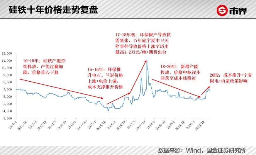 今年以来,在“碳中和”等政策影响下,硅铁产能受到限制,价格有较大涨幅。年初,每吨硅铁现货的价格在6000左右,10月、11月,价格最高时能到16000元左右。