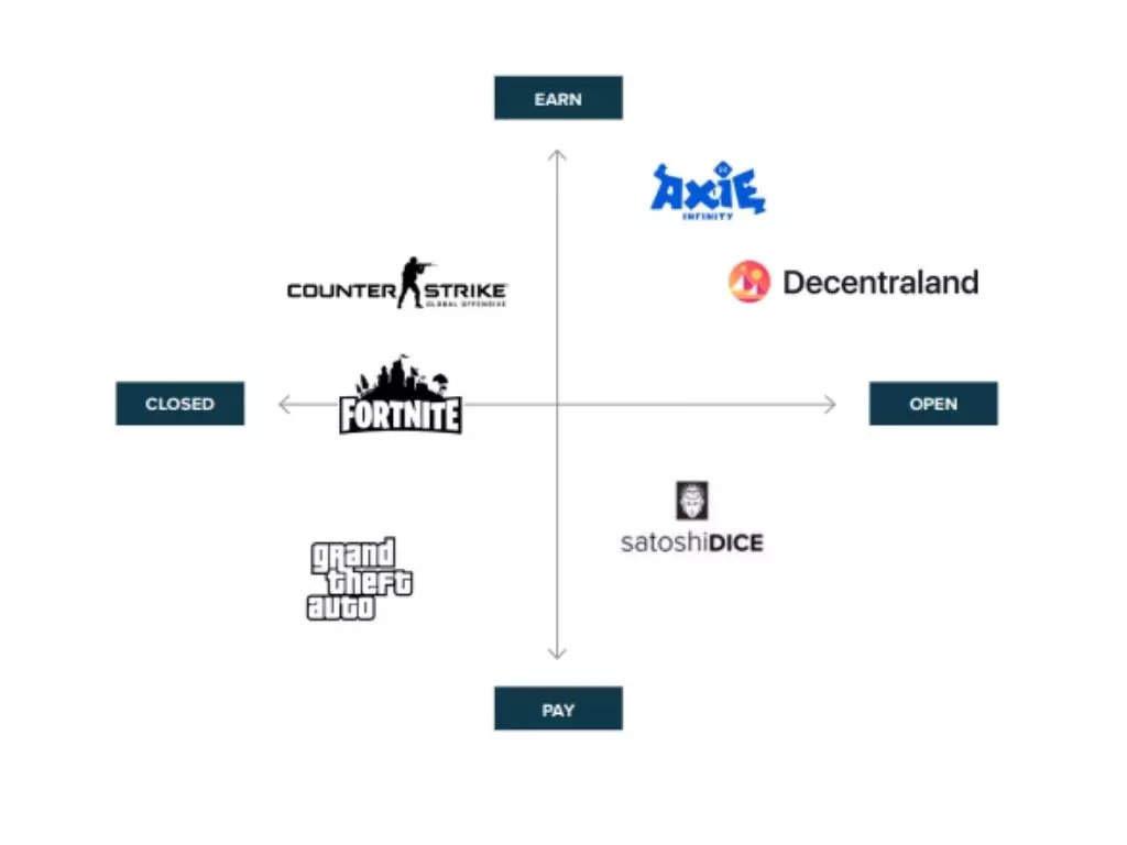 相比之下,基于Web 2.0的封闭式共同元宇宙不支持P2E模型 。例如,玩家可能会在Fortnite堡垒之夜或Grand Theft Auto等游戏中慢慢收集数字资产,并将其用于游戏,但他们无法在游戏中出售装备去赚钱。