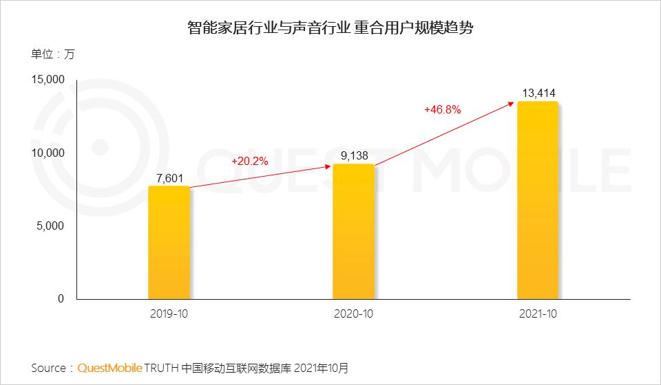 3、随着智能音箱等物联网设备的快速发展,带动了音频内容、语音交互方式的需求爆发,智能家居行业与声音行业重合用户规模规模增长显著,已达1.3亿量级