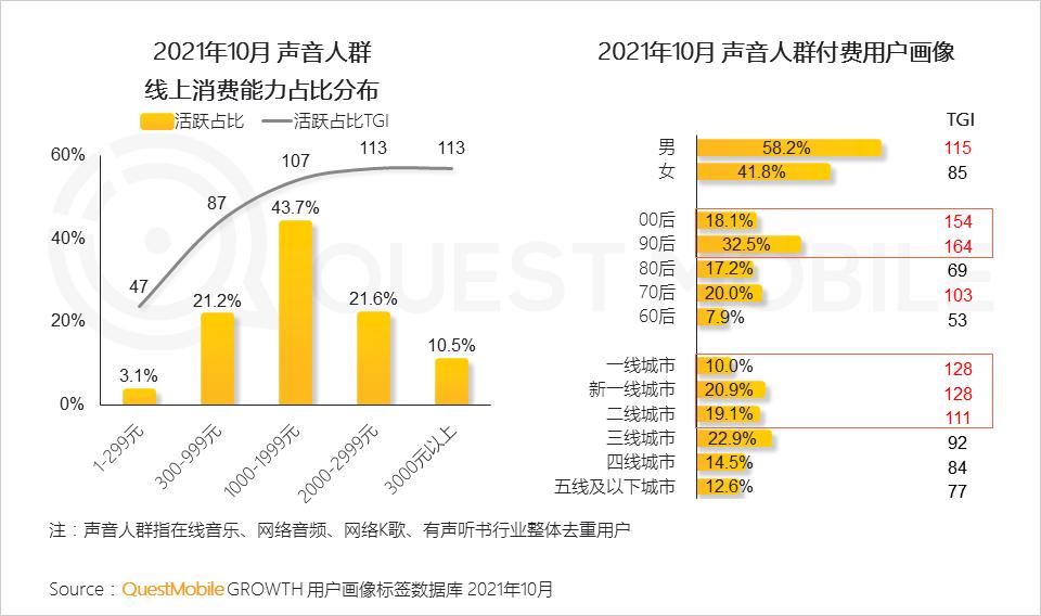 6、精神消费升级趋势下,更多年轻用户、一二线经济发展较发达的城市用户愿意为音频内容付费