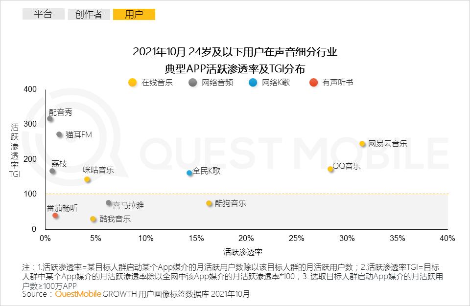 3、网络音频涵盖音频内容形式更加多样化,相较于其他声音平台用户使用更为高频