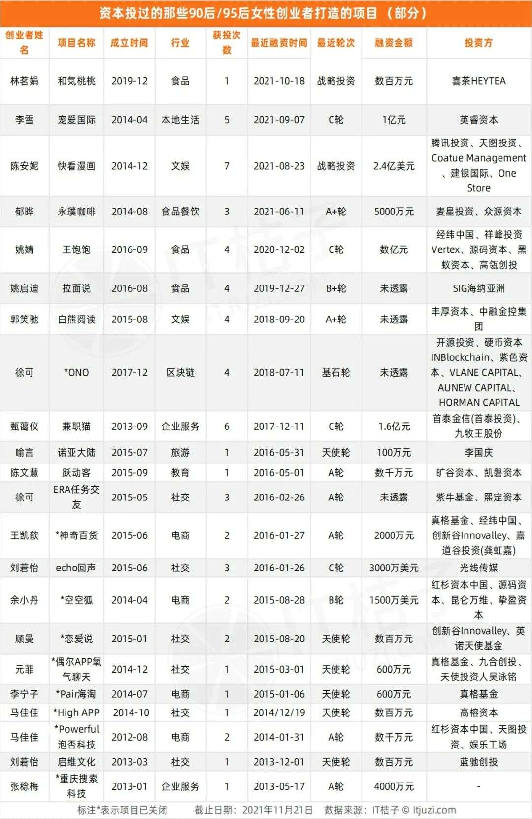 以上共列举了 20 位获得投资的 90/95 后女性创业者,她们中有不少是连续创业者,比如刘莙仪、马佳佳、姚启迪,当然她们也并不是每次创业,都可以获得投资。
