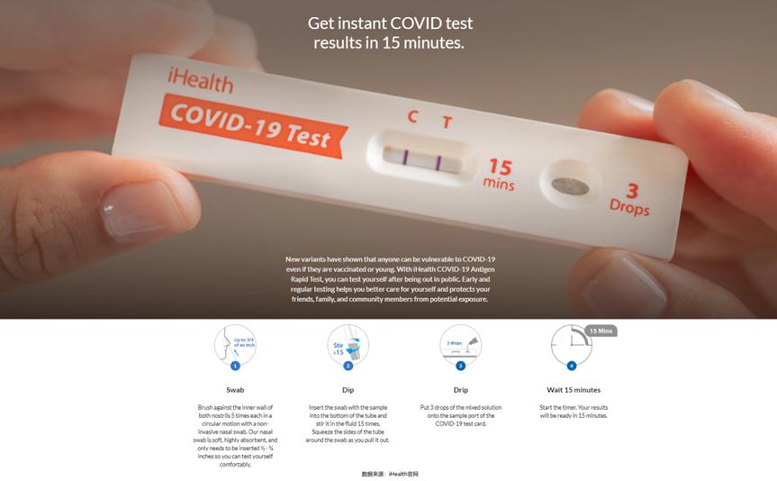根据公开资料,iHealth家用新冠OTC试剂盒,官网单人份售价6.99美元,于11月第二周开始在美国同时向C端和B端销售,虽已进入美国集采,但尚未登陆亚马逊网络销售渠道。