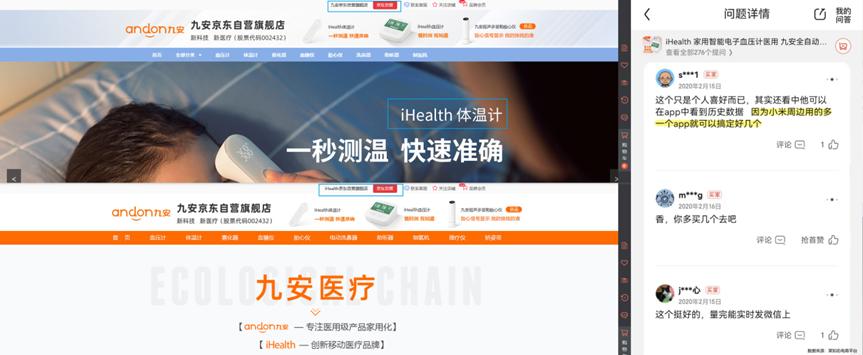 根据某知名电商平台数据,在2020年2月购买九安医疗的消费者中,有一部分人就是冲着“小米生态链”才购买iHealth产品的。