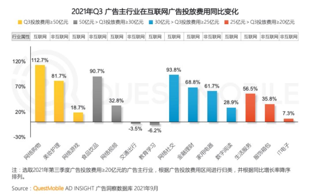 覆巢之下安有完卵,若仅是对比今年三个季度的同比增速,可以说几乎没有一家互联网公司有令人惊喜的提升。但据CTR(央视市场研究)发布的2021年三季度广告投放数据报告,中国广告市场正在强力复苏,呈现增长态势,广告投放所涉及到的主要品类进入正增长区间。
