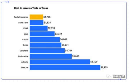 (4)基于特斯拉的这种“安全评分”模式以及与Repoint保险公司的合作,特斯拉的汽车保险目前已经是德克萨斯州覆盖最广和最便宜的汽车保险了。