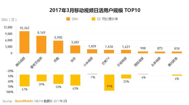 在2017年初,短视频还没有被视为一个独立的互联网细分领域,至少QuestMobile在其报告中,一直是以在线视频或者移动视频来称呼整个行业。当时行业的三巨头,也是目前“长视频”领域的三巨头腾讯视频、爱奇艺和优酷,而短视频中表现亮眼的只有快手,头条视频是前十中“吊车尾”般的存在。