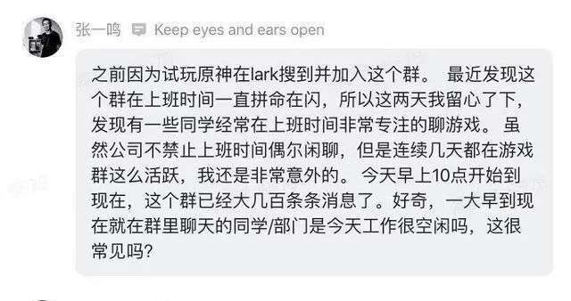当员工数超过10万人时,还希望全员保持创业的状态,这更接近于理想而非现实。2020年,张一鸣曾因为内部《原神》兴趣群的几百条信息而吐槽:“好奇,一大早到现在就在群里聊天的同学/部门是今天工作很空闲吗,这很常见吗?”按照DoNews对互联网的了解,这在大公司里是很常见的,字节跳动没理由特殊。