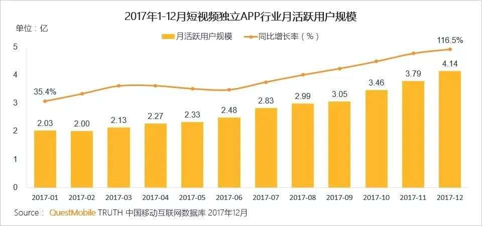 但字节跳动,却感知到了短视频的潜力。头条视频原本是今日头条的一项内部功能,到2017年初时,其在今日头条内部渗透率已经过半,并还在稳步增长。今日头条作为资讯平台尚且如此,足以证明短视频内容相对图文内容的优势,而这也是科技进步带动移动互联网发展的必然趋势。