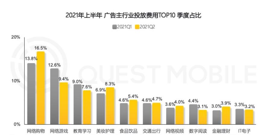 QuestMobile报告显示,今年第二季度对比第一季度,网络游戏和教育学习类广告投入占比出现下滑。最近也有消息爆出,某家国内互联网公司广告收入首次出现停止增长,这或许与网游和教育类广告投放下降有关,在以往这两大行业分别是广告投放费用的第二和第三位,特别是在6月份之后的学生暑假期间,正是网游和教育类广告投放的关键时刻。快手近几个季度的广告营业收入也出现增速放缓的趋势,今年Q1至Q3的广告增速分别是161%、156%和76.5%。