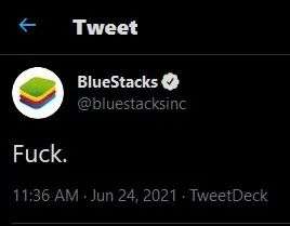 WSA 消息一出,各大安卓模拟器厂商都在颤抖。有个梗图(假的)说蓝叠(Bluestacks)在推特发了一条消息:“Fuck”。
